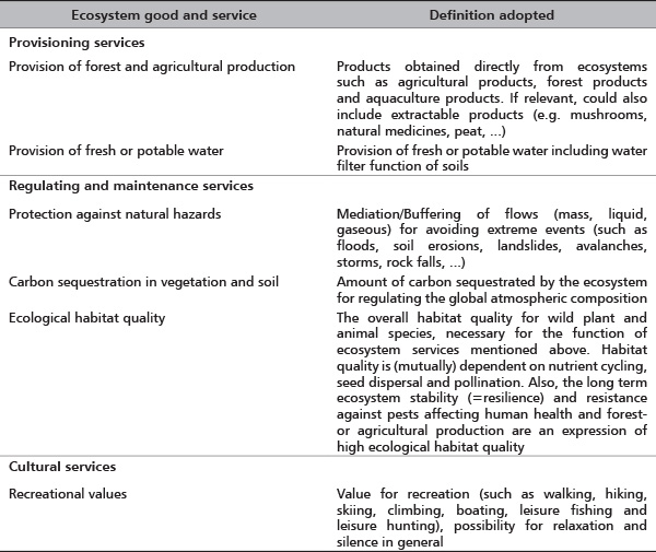 TABLE 2. Alpine ecosystem goods and services considered in this paper (source: [20], [21], [22])