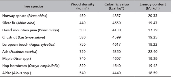 The third indicator (I3) considers the annual potential primary energy that can be obtained from forest biomass in each case study considering as key variables the annual increment (m3∙ha-1∙year-1) and the tree composition per forest types. The fuel has an amount of energy - called primary energy - that is converted through combustion in final energy to be used for heating or hot water for sanitary purposes [48]. For this analysis, the calorific values of the main Alpine tree species with a moisture content of 15% (dry wood) were considered (Table 4). Calorific value indicates the amount of heat that develops from the mass (weight) in its complete combustion with oxygen in a calorimeter standardize. In the last step, the calorific value of each tree species (kcal∙kg-1) was transformed in energy content (MJ∙kg-1) using the specific wood density. The energy content allowed to calculate the potential energy that can be obtained in a hectare of forest in each case study. Energy potential is considered as a benefit which can be transformed in monetary terms using the local market price.