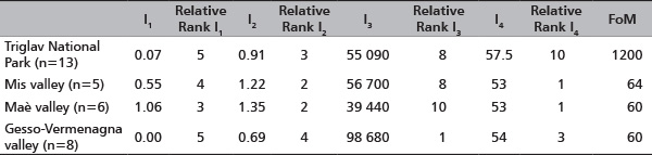 Finally, FoM was implemented with the support of the four above mentioned indicators (Table 8). From the theoretical point of view, in the present study FoM can vary from a minimum of 1 to a maximum of 10 000. The results show that the lowest FoM is found for the case studies of Maè valley (FoM = 60) and Gesso-Vermenagna valley (FoM = 60), while the highest FoM is found for Triglav National Park (FoM = 1200). The greater sustainability of case studies located in Veneto Region is mainly influenced by results of the questionnaire, in particular by the fact that experts considered the forest biomass as an important resource for local development with few negative effects due to harvesting. In Triglav National Park the conservation objectives prevail. In the managed forests (2nd and 3rd protection zone) the forest management is more oriented to timber production than to wood for energy production. Forest biomass for energy production is a local product mainly used for home heating and deriving from private owned forests which prevail in the park.