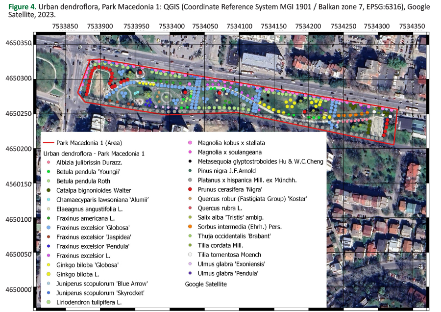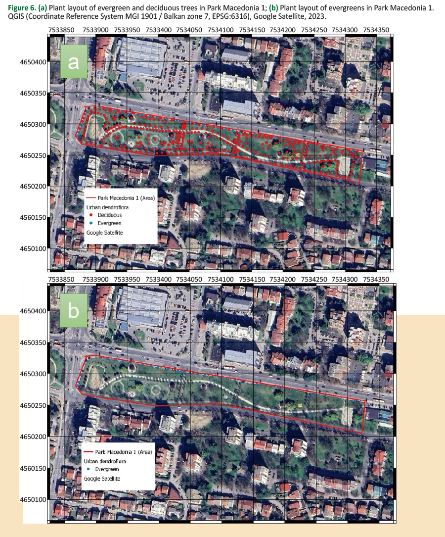 Urban planning and landscape design of parks are part of necessary activities for better and healthier urban life. Creating parks is not just about planting trees but about designing ‘great places’ that enhance the quality of life and support mental and physical health (Stigsdotter 2005, Lyles-Chockley 2008, Douglas et al. 2017). Planting is good, but planting with a plan is better (Sousa-Silva et al. 2023). Thoughtful planting, considering the types of trees, their purposes, and their locations is crucial. Effective landscape design can maximize the benefits of urban greenery, transforming parks into ‘great places’. The insights gained from this analysis offer valuable guidance for future urban designs in Skopje and other cities, ensuring that parks are not merely green spaces but essential components of a vibrant urban ecosystem.