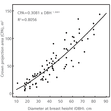 FIGURE 4. Relationship of the crown projection area (CPA) and the DBH