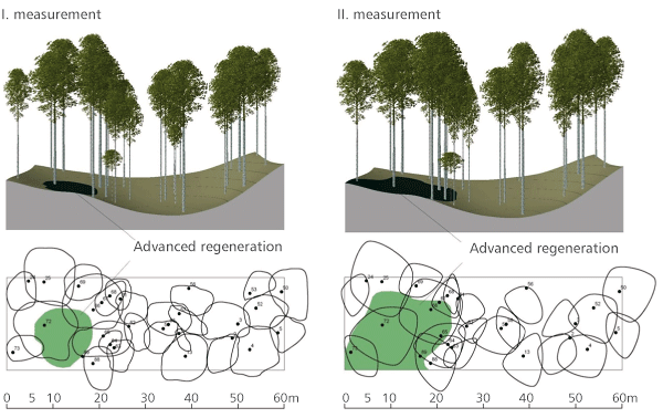 FIGURE 5. Scheme of the development of initiated advanced regeneration between two measurements