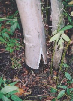 FIGURE 3. A polypropylene tree shelter without a weakening line (August 2006)