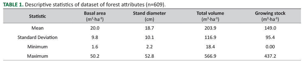 TABLE 1. Descriptive statistics of dataset of forest attributes (n=609).