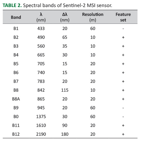 TABLE 2. Spectral bands of Sentinel-2 MSI sensor.