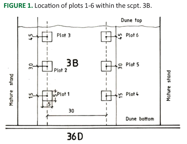 FIGURE 1. Location of plots 1-6 within the scpt. 3B.