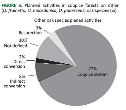 However, even 30 years after the expiration of the Program, no analyses were derived from the extent, quality and success of the undertaken activities. This fact was our main motive to collect and analyze data from the current FMPs for the planned means, methods and activities in coppice oak forests, as well as to analyze results in situ within areas managed as coppices. Our main task was to generate data which would clarify the regenerative potential of over-aged coppice oak forests, and eventually shed light on the capacity for vegetative or generative regeneration.
