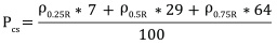 The average density of the cross-section of a stick (ρcs) was determined by the method of Poluboyarinov (1976) as a weighted average of densities ρ0.25R, ρ0.5R, ρ0.75R. If we take the cross-sectional area of the stick as 100%, the average density of the cross-section will equal to: