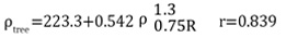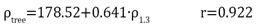 In birch and lime forest we also established a close relationship between wood density (ρtree) and average density of a cross-section at a height of 1.3 m (ρ1.3):