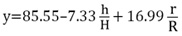 After verifying the equation (Fcalc =1.6 < Ftab = 2.1 for q =0.05) and substituting y by the value in Equation (8) we obtain: