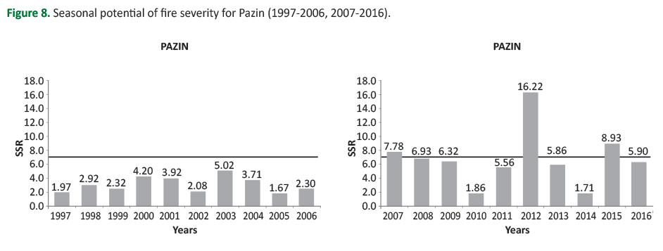 Figure 8. Seasonal potential of fire severity for Pazin (1997-2006, 2007-2016).