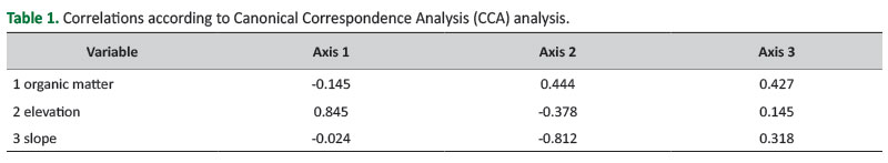 Table 1. Correlations according to Canonical Correspondence Analysis (CCA) analysis.