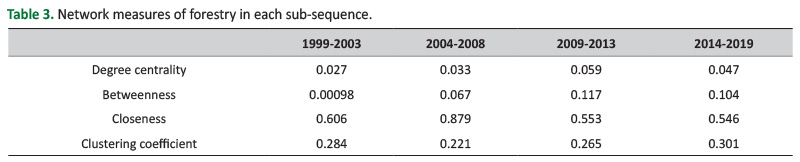 Table 3. Network measures of forestry in each sub-sequence.