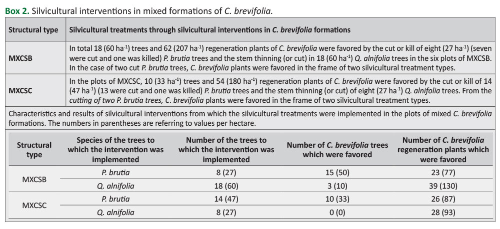 Box 2. Silvicultural interventions in mixed formations of C. brevifolia.