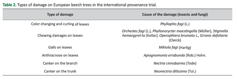 Table 2. Types of damage on European beech trees in the international provenance trial.