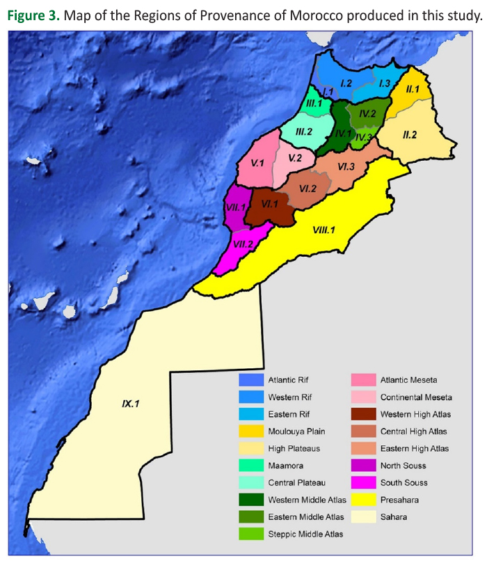 Figure 3. Map of the Regions of Provenance of Morocco produced in this study.