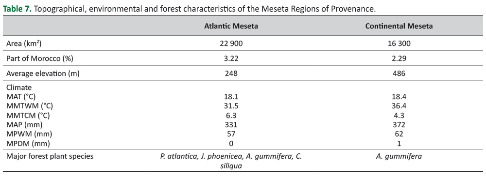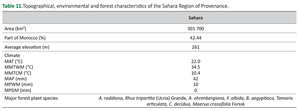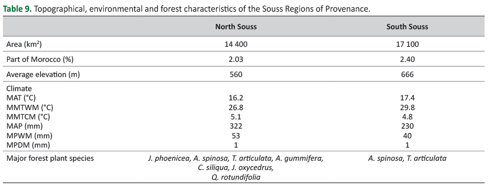 Table 9. Topographical, environmental and forest characteristics of the Souss Regions of Provenance.