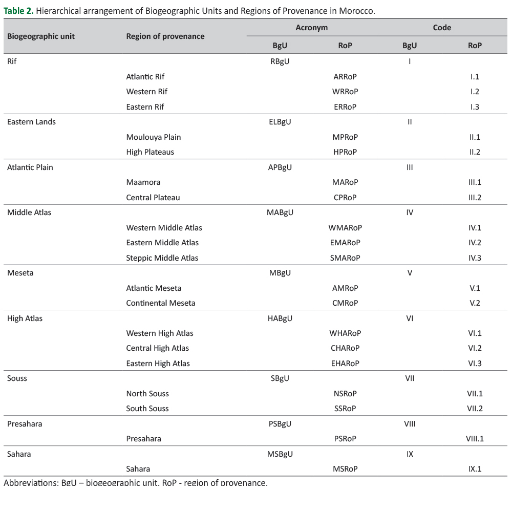Table 2. Hierarchical arrangement of Biogeographic Units and Regions of Provenance in Morocco.