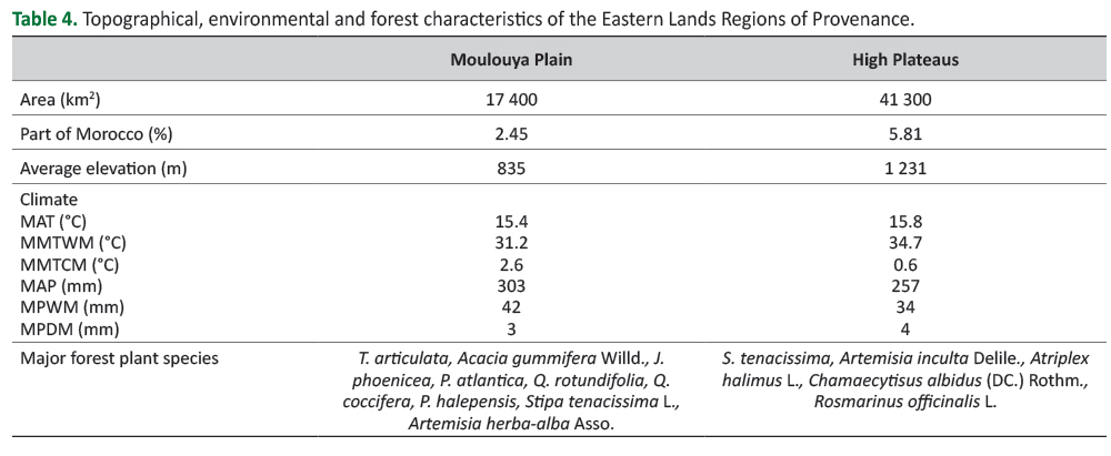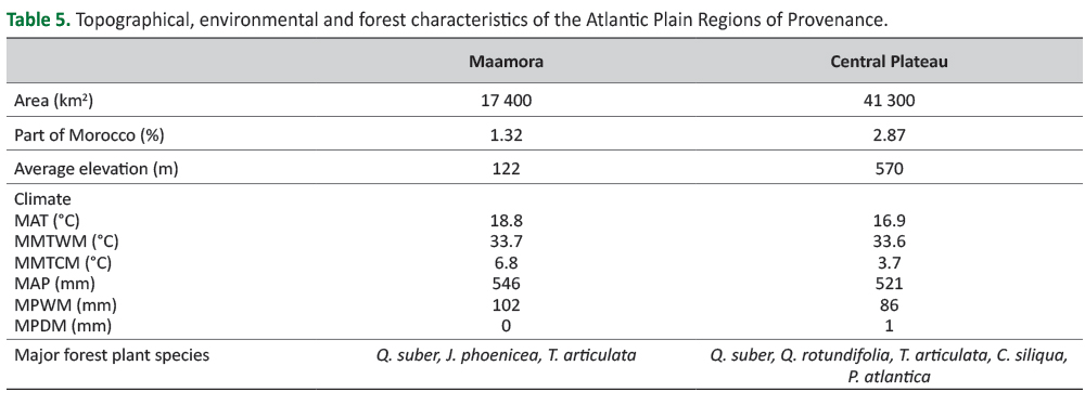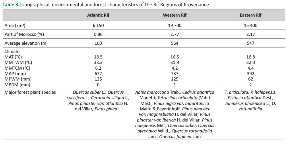 Table 3. Topographical, environmental and forest characteristics of the Rif Regions of Provenance.