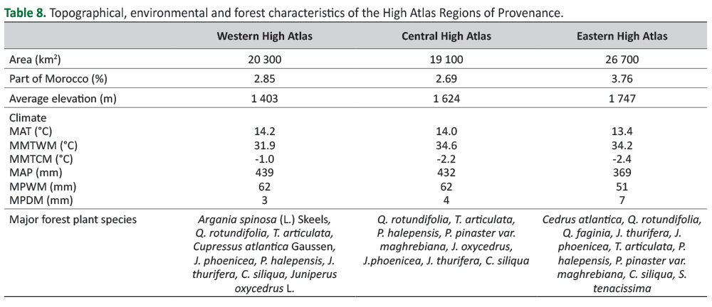 The Middle Atlas biogeographic unit is composed of three Regions of Provenance. Their topographical, environmental and forest characteristics are shown in Table 6.