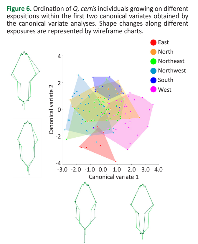 Viscosi V. 2015. Geometric morphometrics and leaf phenotypic plasticity: assessing fluctuating asymmetry and allometry in European white oaks (Quercus). Bot J Linn 179(2): 335-348. https://doi.org/10.1111/boj.12323.