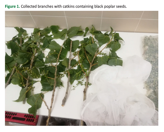 Figure 1. Collected branches with catkins containing black poplar seeds.
