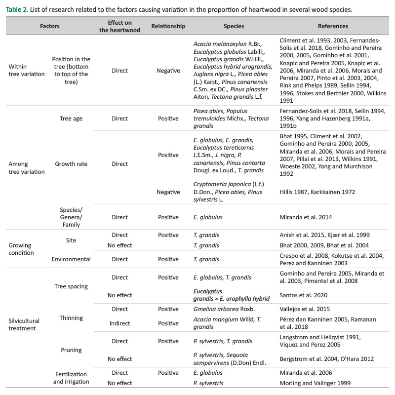 Citation: Arisandi R, Marsoem SN, Sutapa JPG, Lukmandaru G, 2023. A Review of the Factors Influencing Variations in the Heartwood Proportion for Solid Wood. South-east Eur for 14(2): 245-253. https://doi.org/10.15177/seefor.23-15.