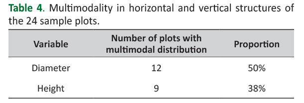 Table 4. Multimodality in horizontal and vertical structures of the 24 sample plots.