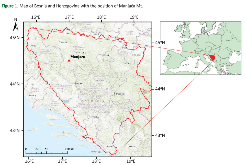 Figure 1. Map of Bosnia and Herzegovina with the position of Manjača Mt.