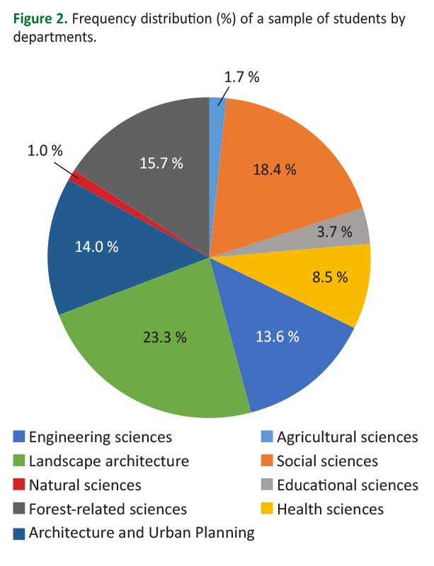 For the purpose of statistical analysis and comparison, the student departments were classified into two groups: students affiliated with Forest and Landscape-related departments (39.6%) and students from other Departments (60.4%).