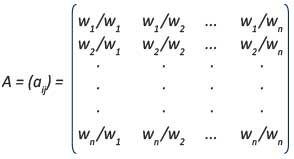 A reciprocal matrix was produced using the results of the pairwise comparison. In the reciprocal matrix, the row indicates the relative weight of each activity concerning the others (when i=j, then aij=1).