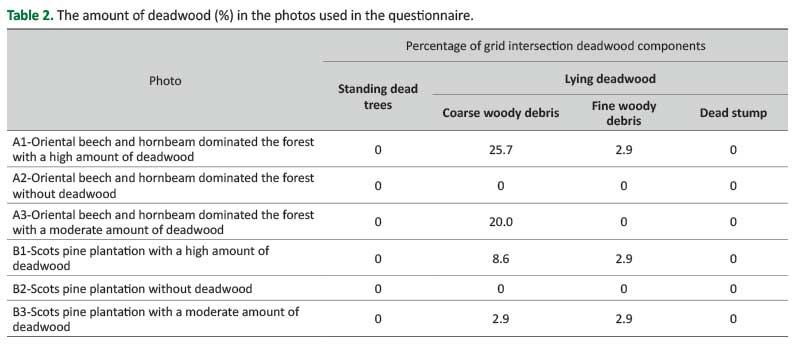 Table 2. The amount of deadwood (%) in the photos used in the questionnaire.