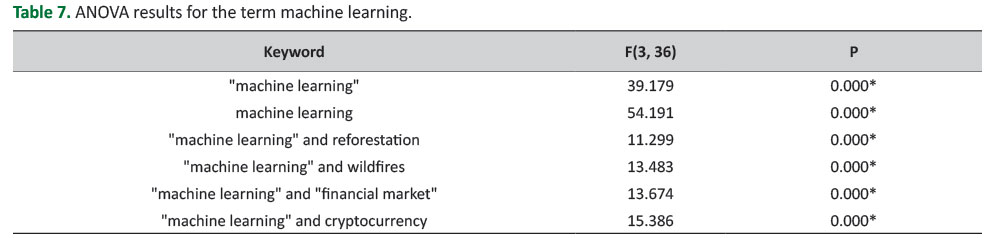 Table 7. ANOVA results for the term machine learning.