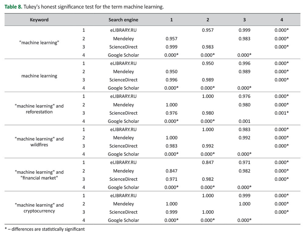 Table 8. Tukey's honest significance test for the term machine learning.
