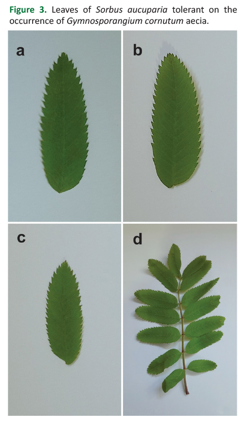 Figure 3. Leaves of Sorbus aucuparia tolerant on the occurrence of Gymnosporangium cornutum aecia.