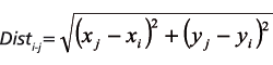 The Euclidean distance between two trees (Disti-j) was derived with a formula for the distance between two points on a plane (Equation 3):