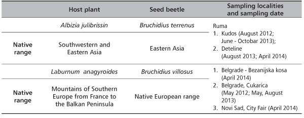 TABLE 1. Host plant and seed beetles native range, sampling localities and sampling date in Serbia