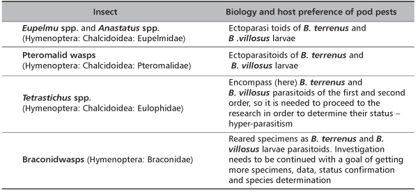 TABLE 3. Parasitoid complex as potential biological threatening agents for seed pests