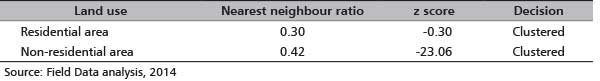 The pattern of spread of ethno-medicinal trees through the use of the nearest neighbour analysis is shown in Table 4. The nearest neighbour ratios of ethno-medicinal trees were 0.30 and 0.42 in the residential and non-residential area respectively.