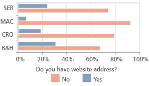 FIGURE 4. The use of websites and email addresses (sample size: 30 companies in B&H; 71 companies in Croatia; 36 companies in Macedonia; 91 in Serbia)
