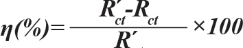 where R’ct and Rct are charge transfer resistance with and without inhibitor, respectively [12].