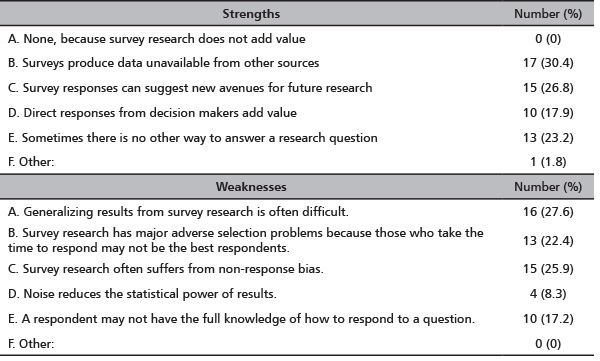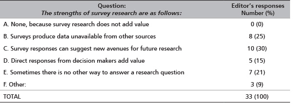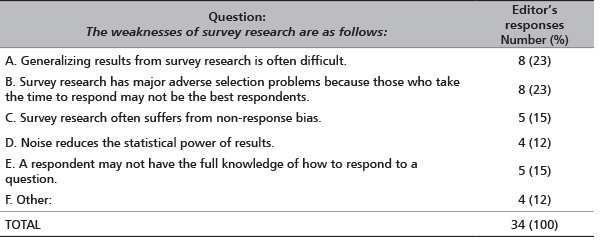 TABLE 7. Perceived strengths and weaknesses of a survey research as seen by finance journal editors [22]