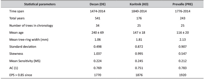 TABLE 2. Statistical parameters of three P. hedreichii chronologies from Kosovo
