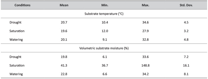 TABLE 5. Descriptive statistics of substrate temperature (°C) and volumetric substrate moisture (%)