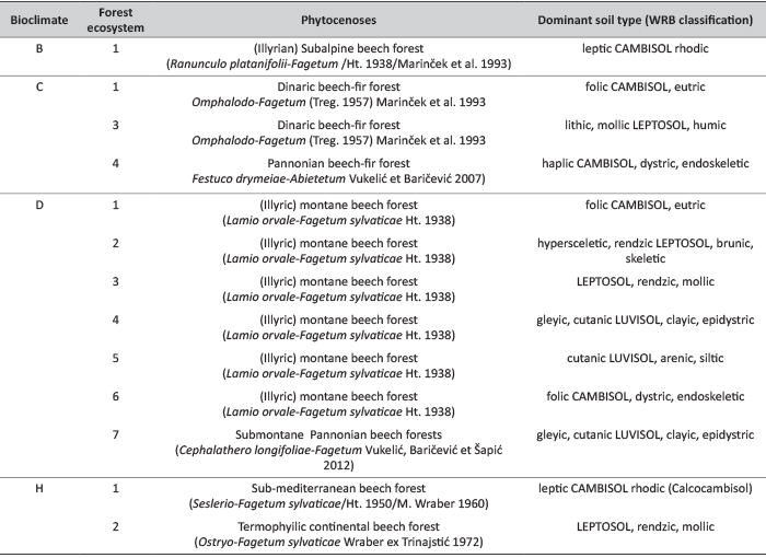 TABLE 1. The dominant soil and vegetation pairs constituting the common beech ecosystems