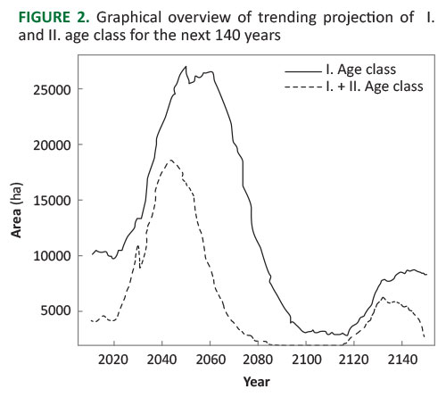 FIGURE 2. Graphical overview of trending projection of I. and II. age class for the next 140 years.