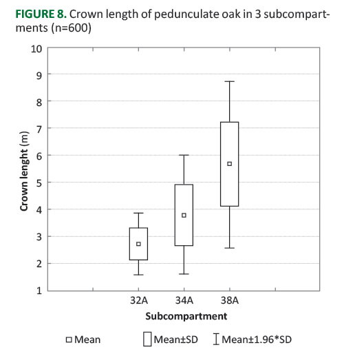 FIGURE 8. Crown length of pedunculate oak in 3 subcompart-ments (n=600).