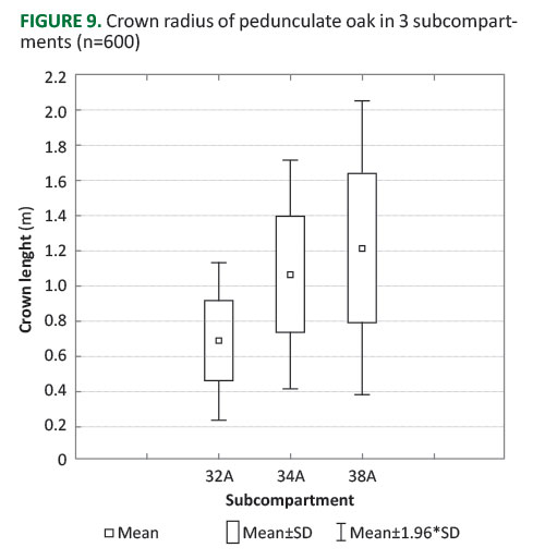 FIGURE 9. Crown radius of pedunculate oak in 3 subcompart-ments (n=600).