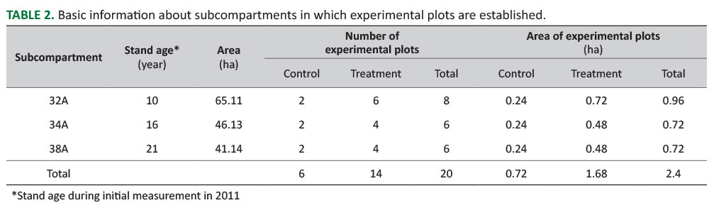 TABLE 2. Basic information about subcompartments in which experimental plots are established.