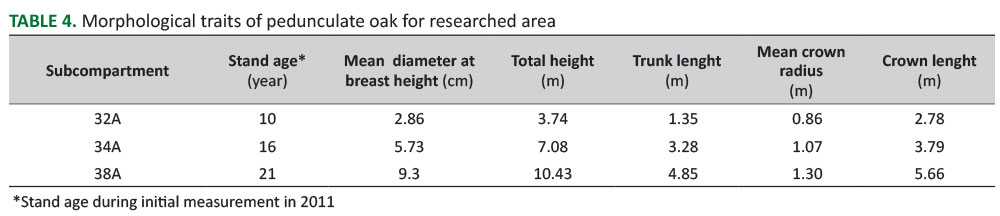 TABLE 4. Morphological traits of pedunculate oak for researched area.